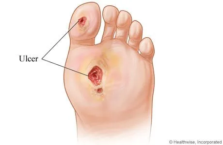 Ulcers, which are open sores in the skin, occur when the outer layers of the skin are injured and the deeper tissues become exposed. They can be caused by excess pressure due to ill-fitting shoes, long periods in bed, or after an injury that breaks the skin. Ulcers are commonly seen in patients who have diabetes, neuropathy or vascular disease. Open wounds can put patients at increased risk of developing infection in the skin and bone.